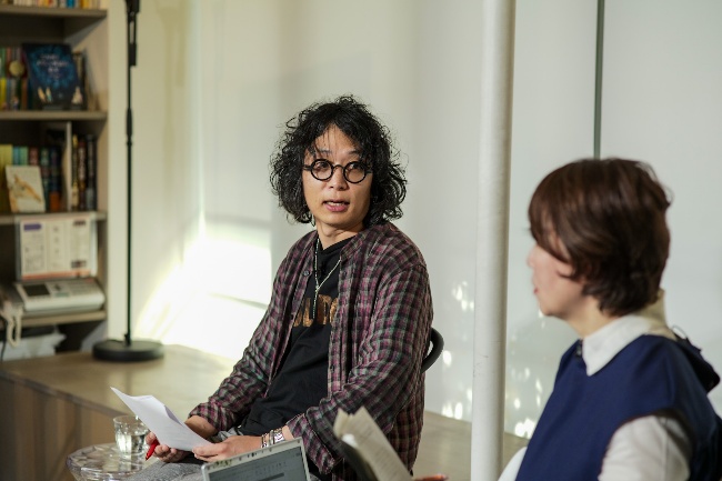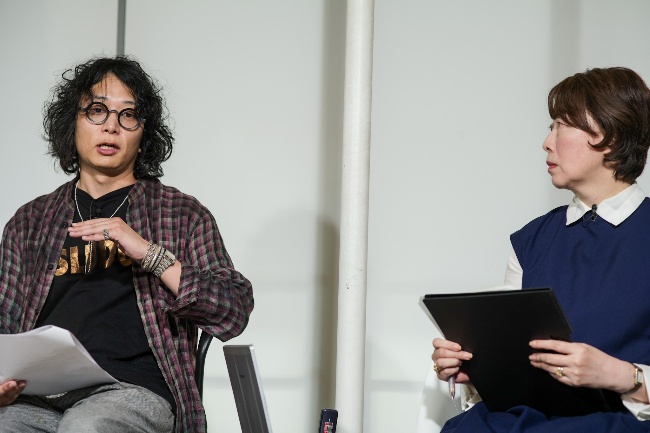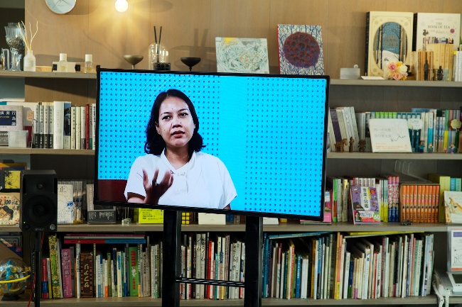 【皆さん、こんにちは。今日は、分断が進む社会をケアする対話とはどんなものかについて考えていきたいと思います。パネリストを紹介します。インドネシアのアートコレクティブ「ルアンルパ」から、建築家やライターなどジャンルを超えて活躍するファリド・ラクンさんと、マネージャーやプロジェクトオフィサーとしてアートプロジェクトに関わるアジェン・ヌルル・アイニさんです。アートコレクティブとは芸術家集団と訳されますが、社会的なつながりを意識した芸術活動を行うグループとして最近捉えられている概念です。お二人はルアンルパに所属し、ドイツで5年に一度開催される国際美術展「ドクメンタ」で、2022年にアジア出身者で初めて芸術監督を務めました。